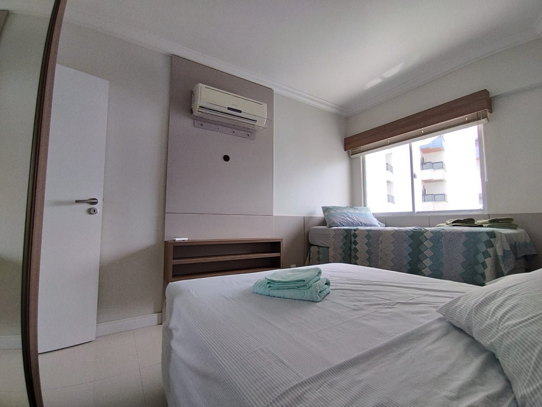 01 Dormitório com ar condicionado (cama CASAL + cama acessoria SOLTEIRO + 01 COLCHAO SOLTEIRO)