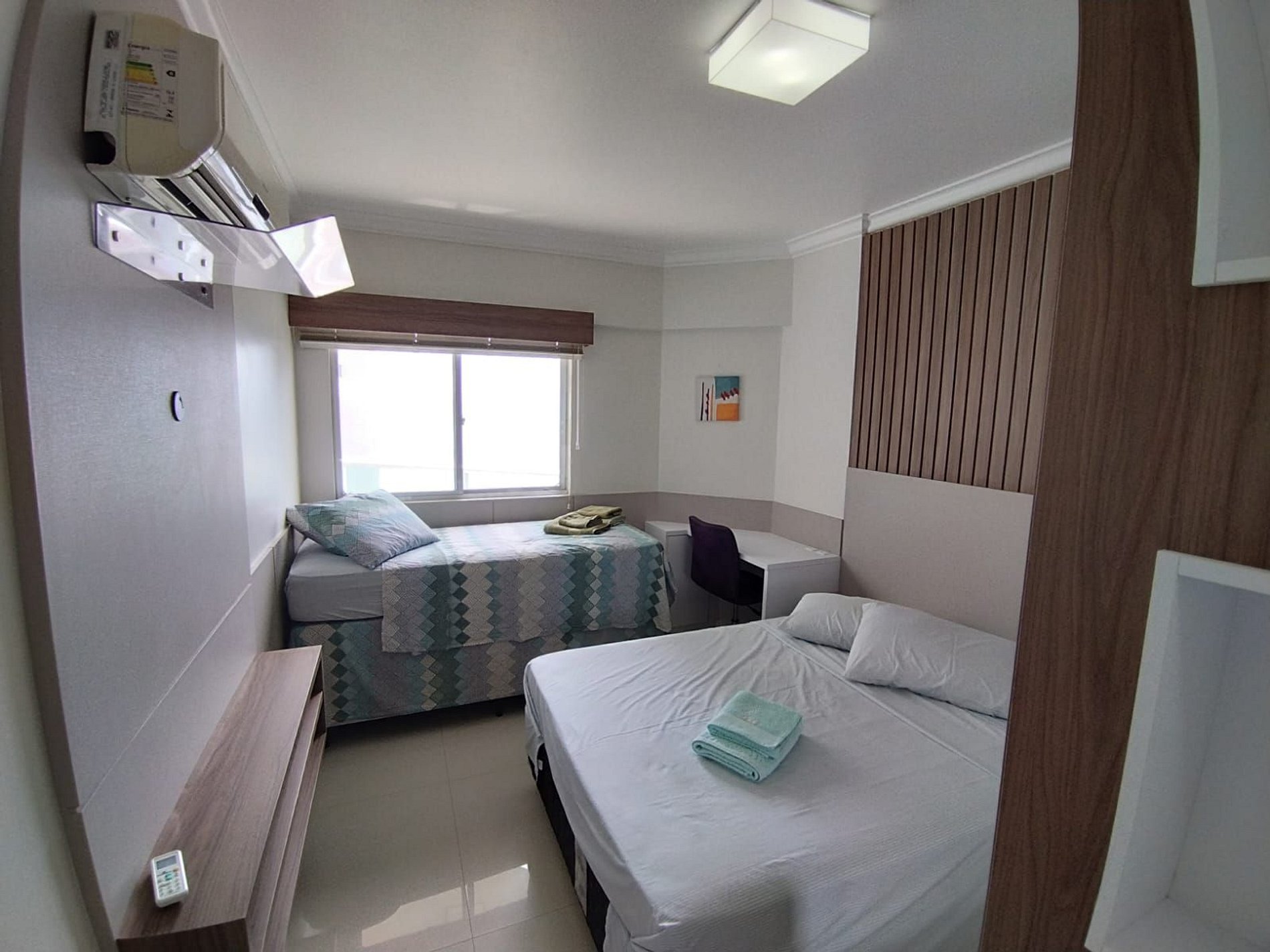 01 Dormitório com ar condicionado (cama CASAL + cama acessoria SOLTEIRO + 01 COLCHAO SOLTEIRO)