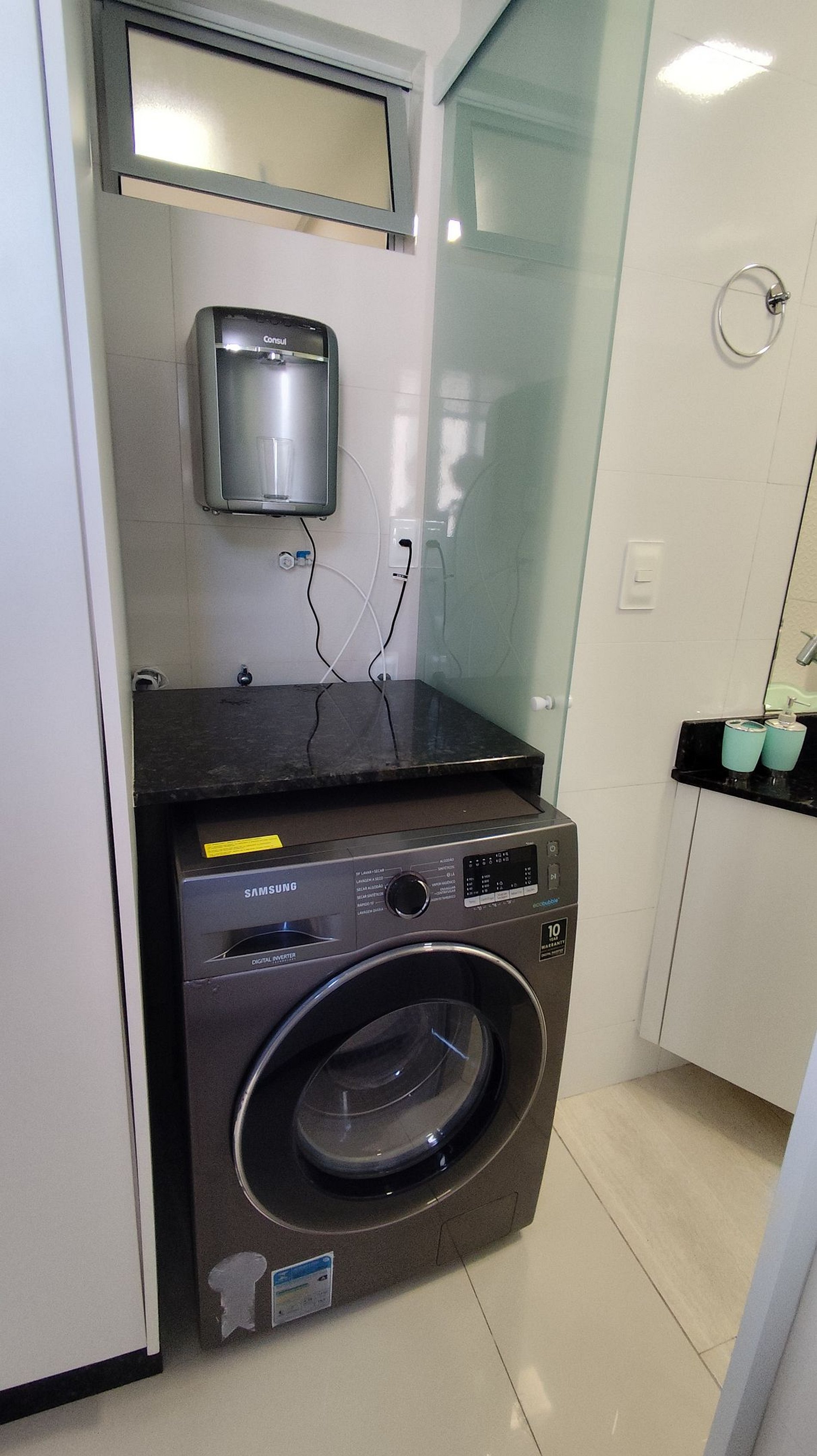 O espaço Cozinha completa com eletros (forno elétrico, micro-ondas, cafeteira, chaleira elétrica, airfryer , liquidificador, purificador de agua ) Louças, talheres e panelas
